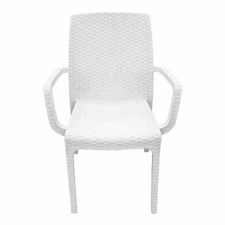 Легкий и удобный пластиковый стул с подлокотниками, на 100% имитирует искусственный ротанг.